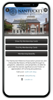 Select the “Nantucket Historical Association” tile and touch “Find my Membership Cards.”
