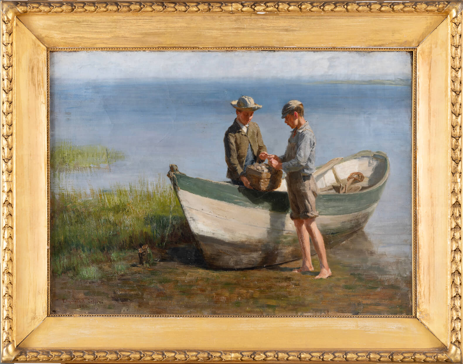 From 2023-2024, the NHA had an exciting year of acquisitions to the collection.  A significant addition was Cranberry Pickers by Eastman Johnson, the primary artist of national importance associated with Nantucket in the late 19th century. This beautifully finished piece is one of two dozen works the artist made to prepare for his monumental canvas, Cranberry Harvest, now at the Timkin Museum in San Diego.
