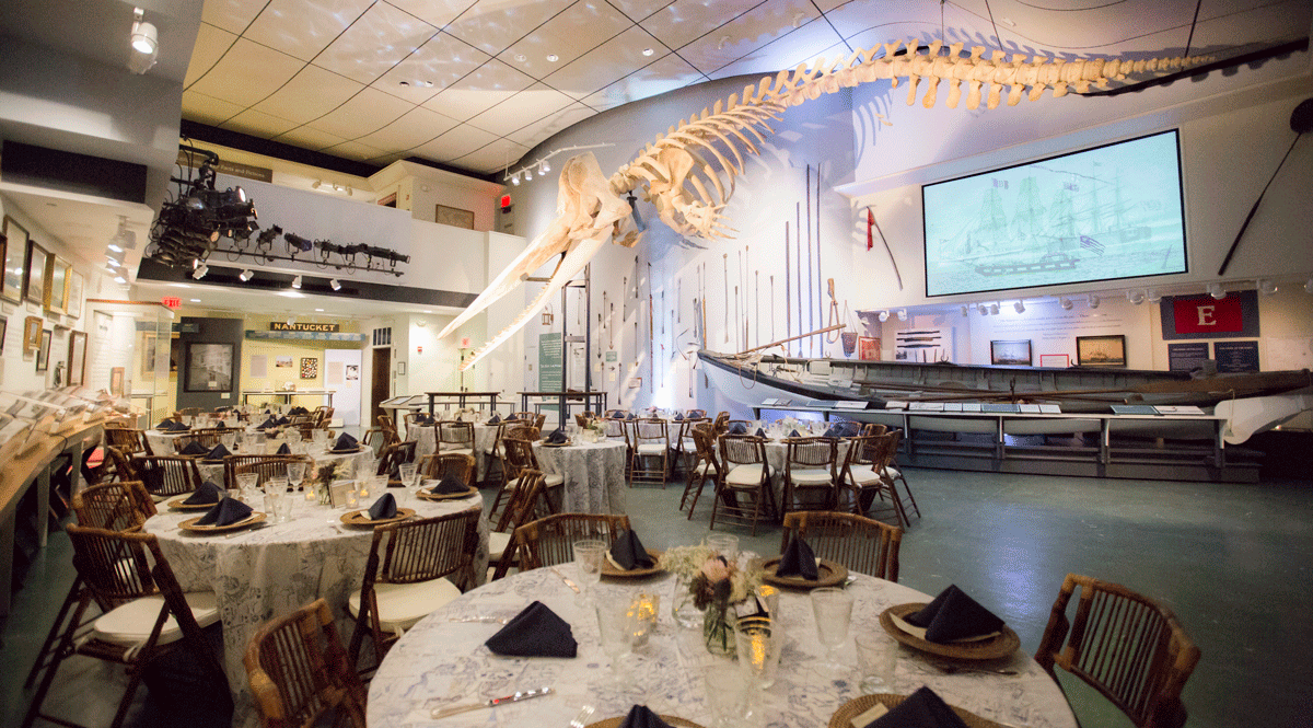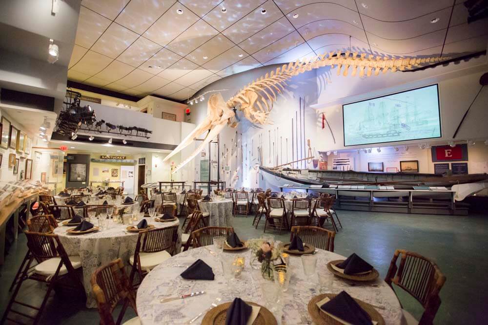 Located in the heart of downtown Nantucket, the Whaling Museum offers guests the perfect mix of modern design combined with history and tradition. The museum’s climate-controlled space features an unforgettable 46-foot sperm whale skeleton, elegant art, and priceless artifacts. Flowing from the museum’s main hall is the Hadwen & Barney Oil and Candle Factory, a soaring 1847 two-level, exposed brick space with original wooden ceiling beams.