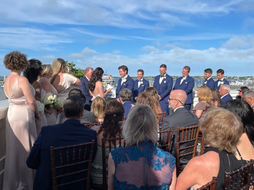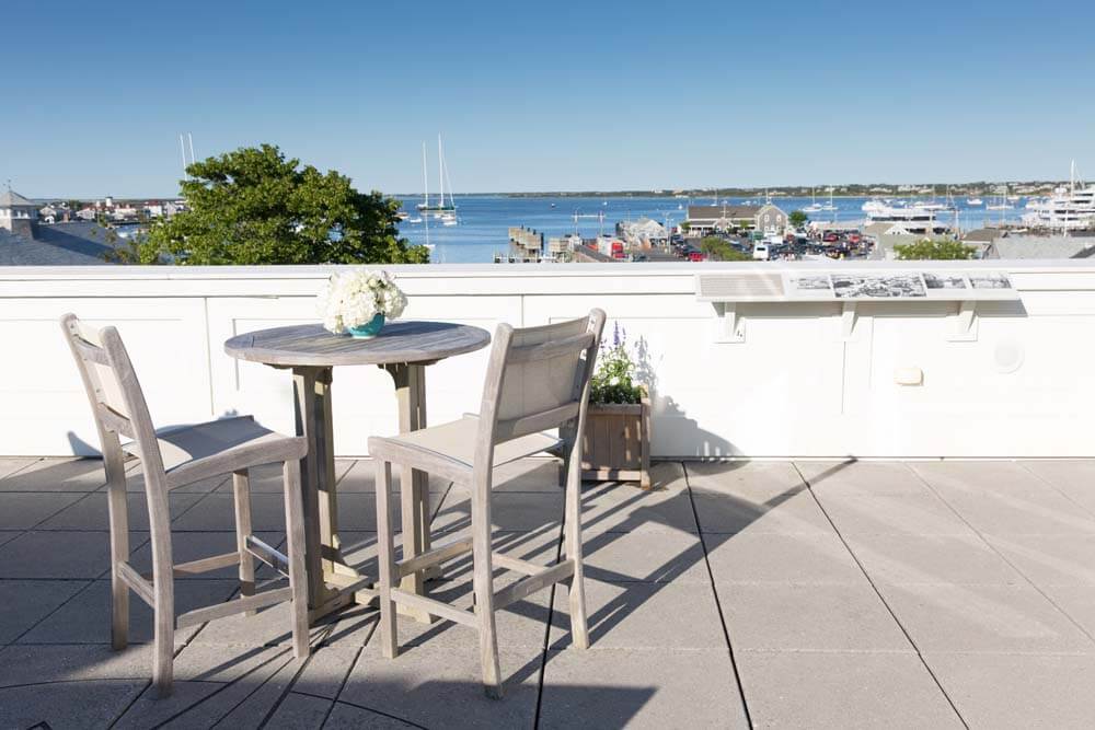 Offering unparalleled panoramic views of Nantucket Harbor, the Whaling Museum’s outdoor deck, Tucker’s Roofwalk, is the largest rooftop party space in downtown Nantucket.