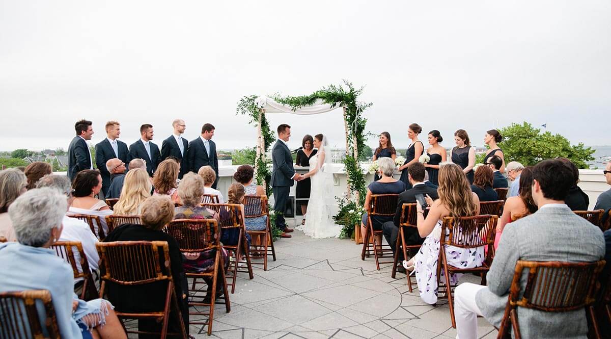 Overlooking the landmark historic district with sight lines to the sea, it is the perfect location for wedding ceremonies, cocktail events, sunrises, and sunsets.