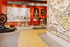 Comenzando en el siglo XVI, se puso de moda para jóvenes ricos y algunas mujeres visitar los capitales culturales de europa como parte de su educación clásico. En 1841, Paul Mitchell Jr. Se retiró del negocio ballenero de su familia y se embarcó en una gira europea de dos aÑos con su amigo, el pintor, William Swain. Mitchell compró este panel decorativo en Naples. Se reproduce un mosaico del suelo, de una casa en Pompeya que fue quemado por la erupción de Monte Vesubio en 79 AD.