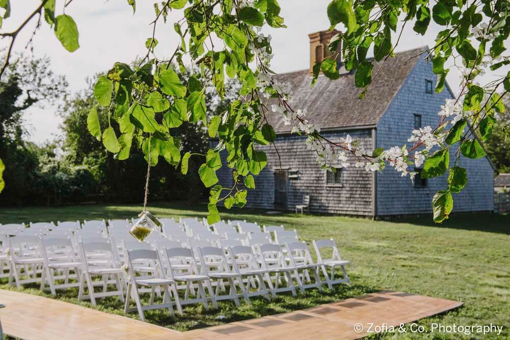 The Oldest House is ideal for charming outdoor wedding ceremonies with spectacular views of both the Oldest House and expansive views of Nantucket’s landscape on Sunset Hill.
