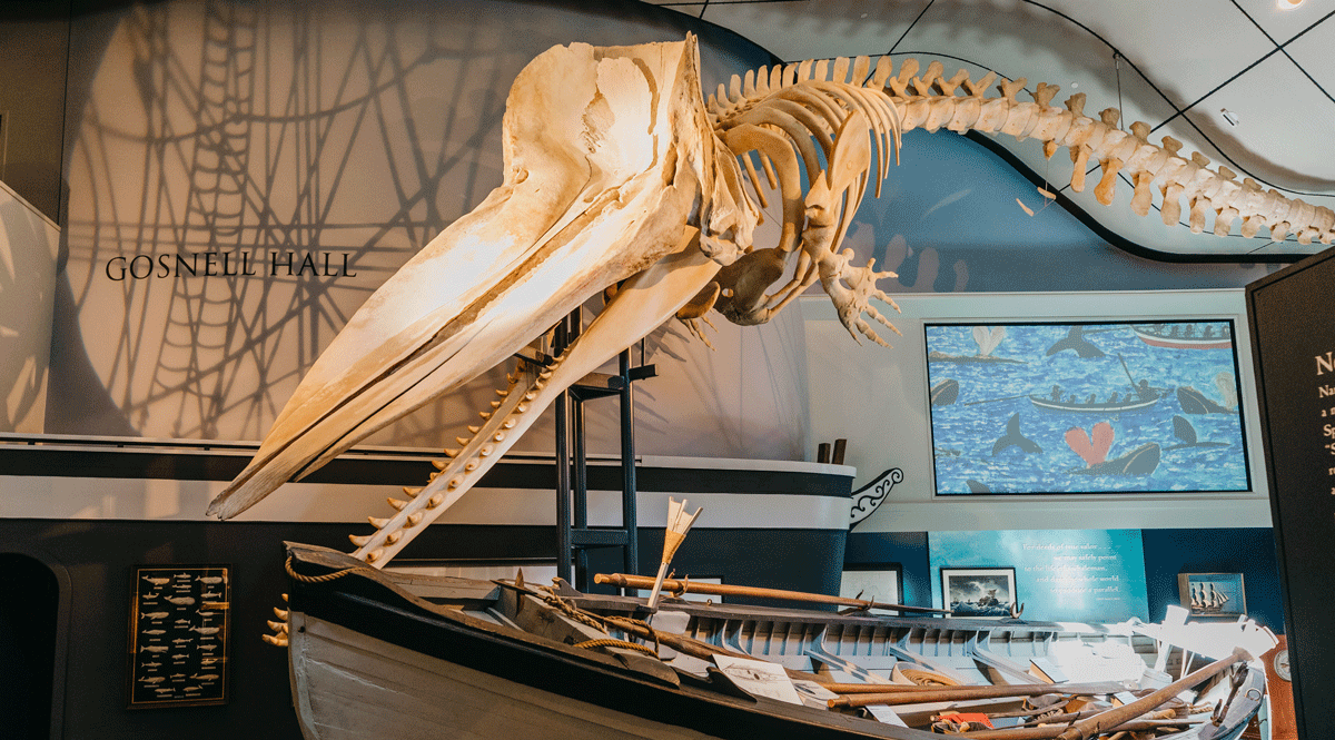 It is especially appropriate for visitors to Nantucket’s Whaling Museum to see a sperm whale. As Niles Parker, former NHA Robyn and John Davis Curator has said, “this is the whale that put Nantucket on the map. During the height of Nantucket’s whaling era, men left the island in droves to hunt the sperm whale. It is because of this whale that the island enjoyed the reputation of being one of the most prosperous ports in America during the late eighteenth and early nineteenth centuries.”