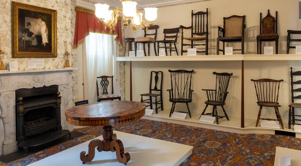 Explore the Decorative Arts collection of the NHA, from fine furniture, tall clocks, and ceramics to an eclectic display of curiously carved artifacts.