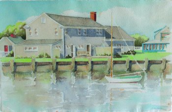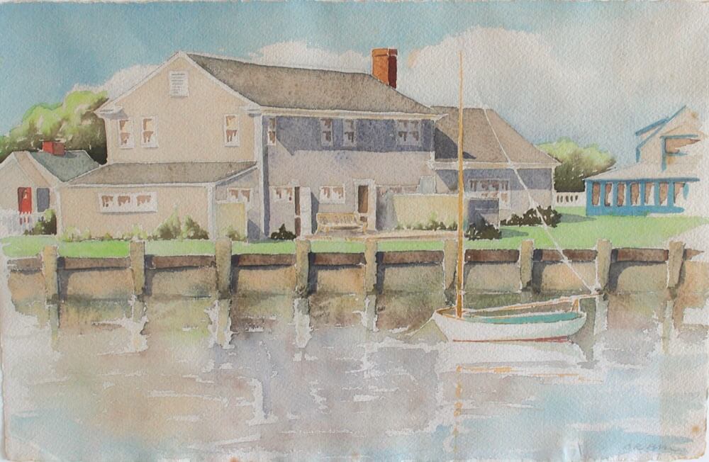 Florence Lang’s vision for the transformation of cottages on Commercial Wharf and other scattered spots along the waterfront from old shacks to artist studios was pivotal for the Art Colony. Her renovated wharf studios were minimally equipped, with cots, soapstone sinks, and shared toilets and showers. Each cottage possessed a charming nickname, such as Wateredge (the longtime studio of Elizabeth Saltonstall), Harborview, the Scallop, the Barnacle, Sailloft, and Barnsite. With rents as low as fifty to seventy dollars per season, as the Boston Herald gasped, it was easy to “realize why Nantucket artists are still rubbing their eyes and wondering if it’s really true!”